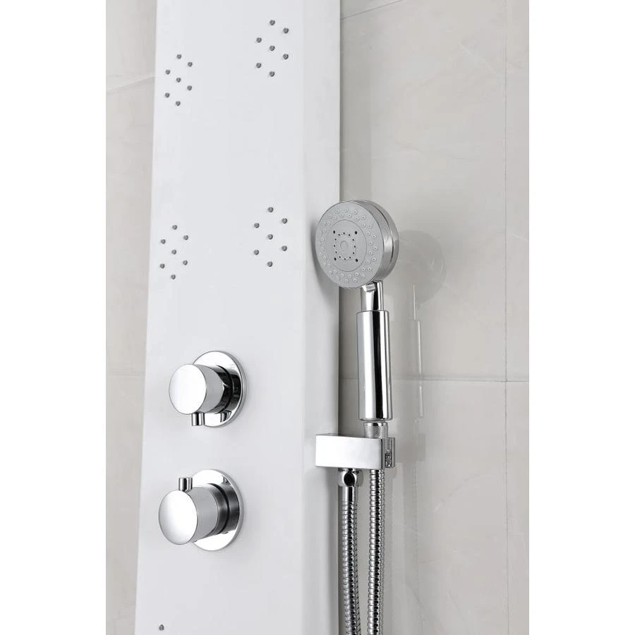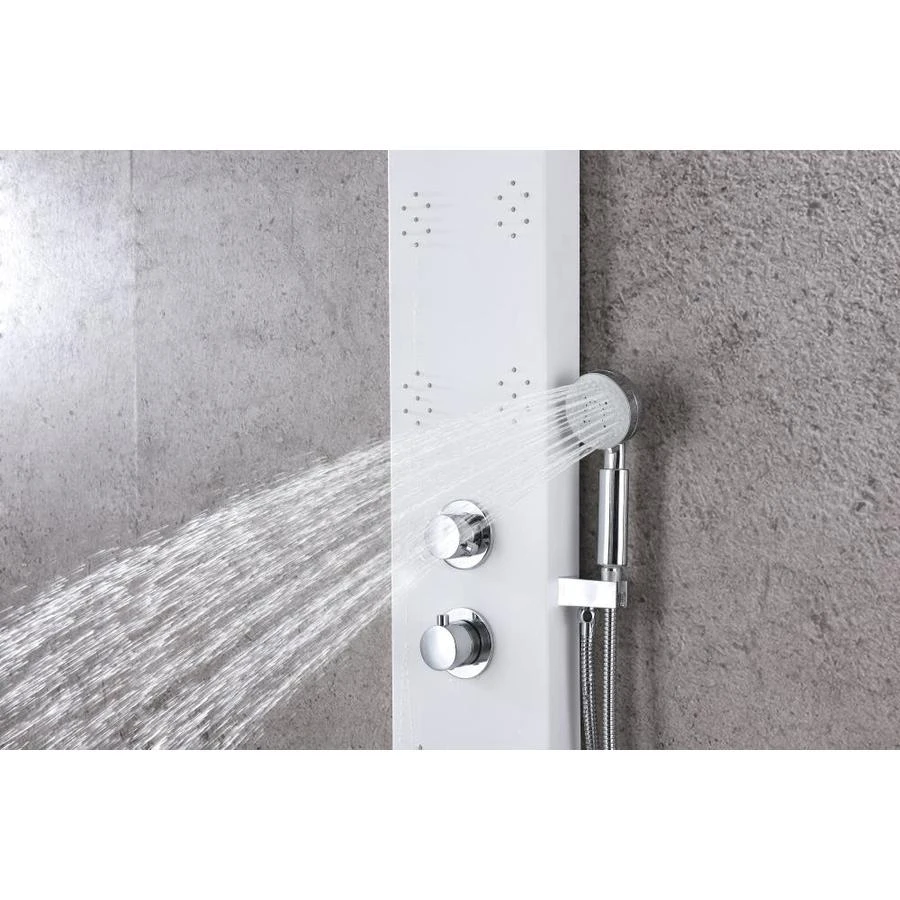 Your order will include one (1) ANZZI Swan full body shower panel, one (1) Heavy Rain shower head, six (6) Acu-Stream body massage jets, one (1) euro-grip free range hand sprayer, one (1) owner’s manual