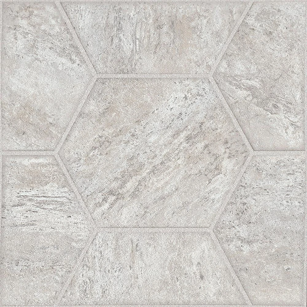 Armstrong Lattice Cream 12 in. x 12 in. Vinyl Tile provides the elegant stone markings of light and bright travertine stone in hexagon shapes. An enhanced embossing provides a true to look and texture of both stone and grout lines. ToughGuard durability guarantees this floor will not rip, tear or gouge under normal household use and a no wax wear layer really stands up to families and pets. Simple peel and stick installation, easy clean up and lifetime limited residential warranty coverage make it a do-it- yourself favorite for active households.