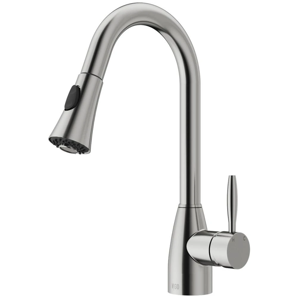 The VIGO Aylesbury Pull-Down Spray Kitchen Faucet is both versatile and specific. A retractable spray head with a 30 inch extension features a 360° swivel spout for practical modernism. The faucet’s dual function capabilities offer an aerated flow or powerful spray to satisfy all of your kitchen needs.