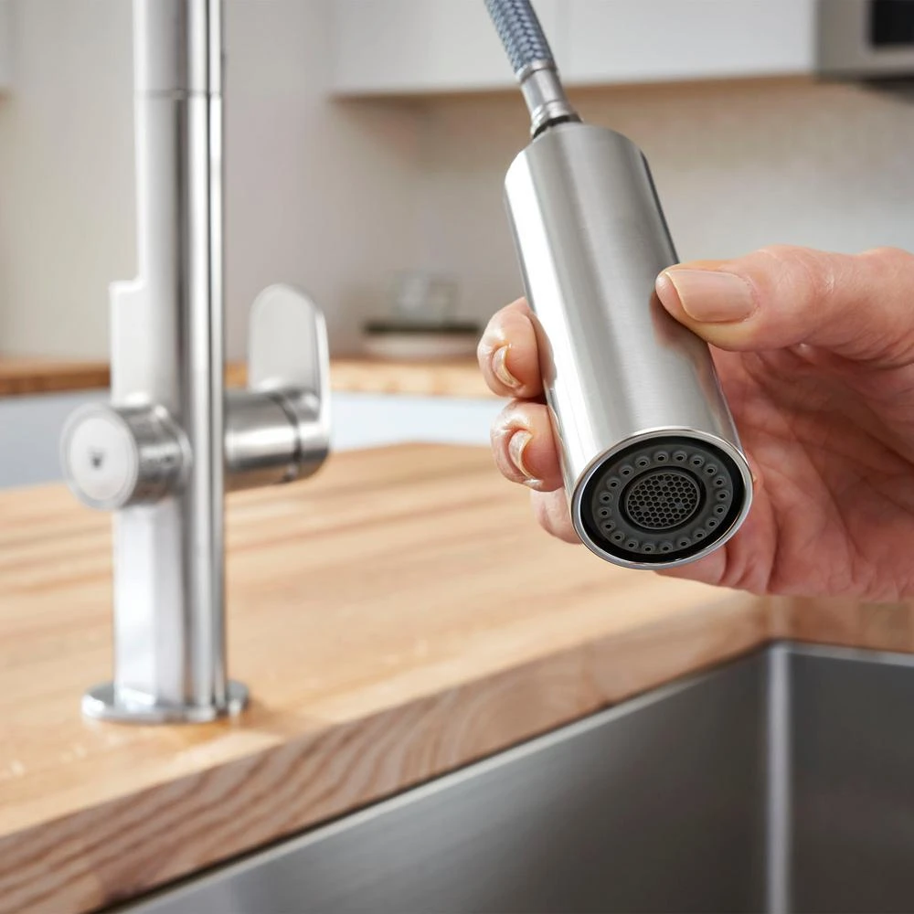 - Dual-function pull-down spray head: allows for easy switching between regular stream and powerful spray