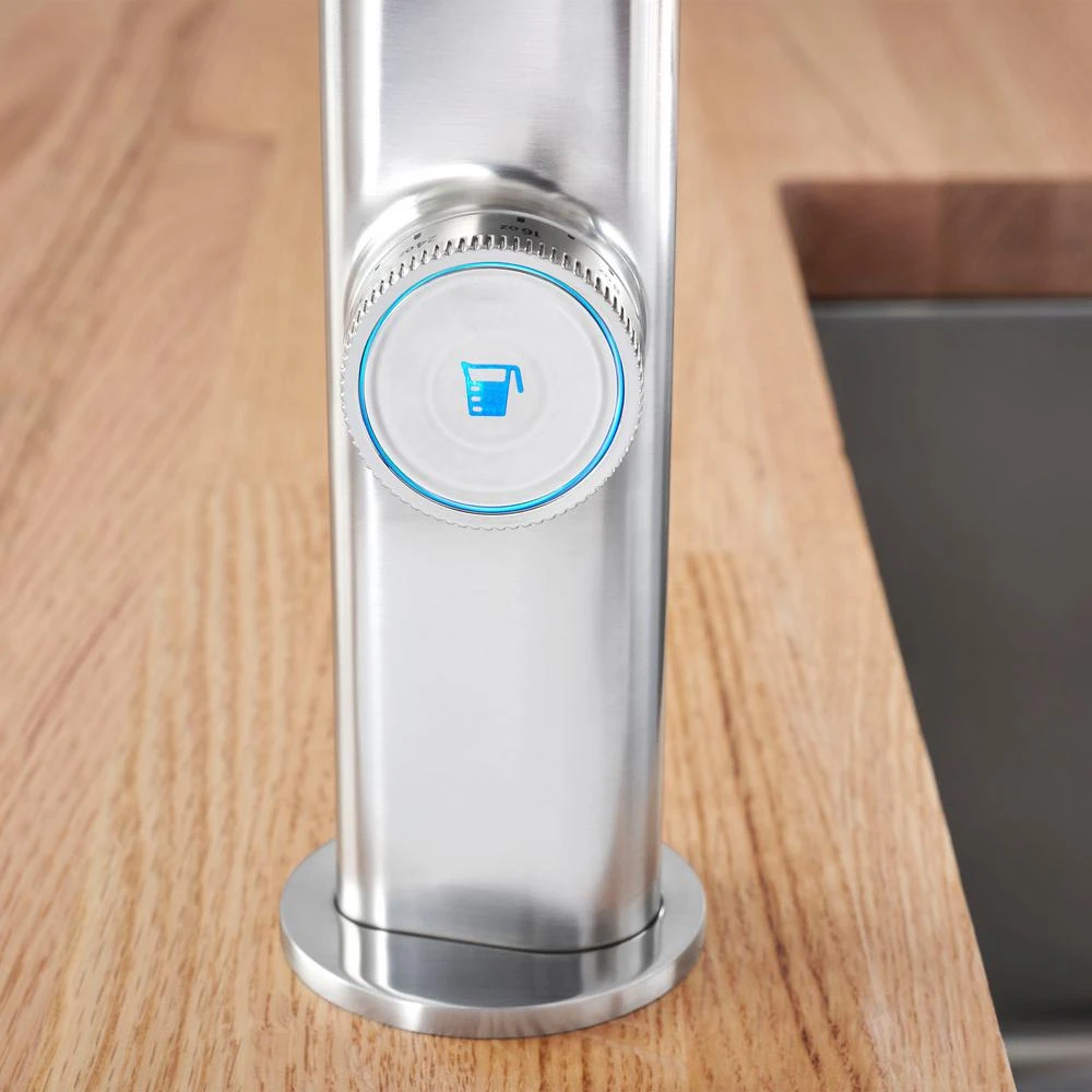 - MeasureFill technology: delivers a precise set volume of water on demand up to 5 cups/40 oz. turn the dial to your desired volume of water, then touch to turn on the water flow