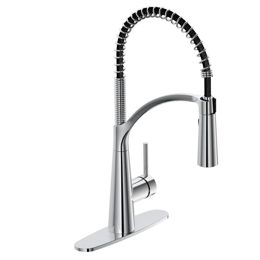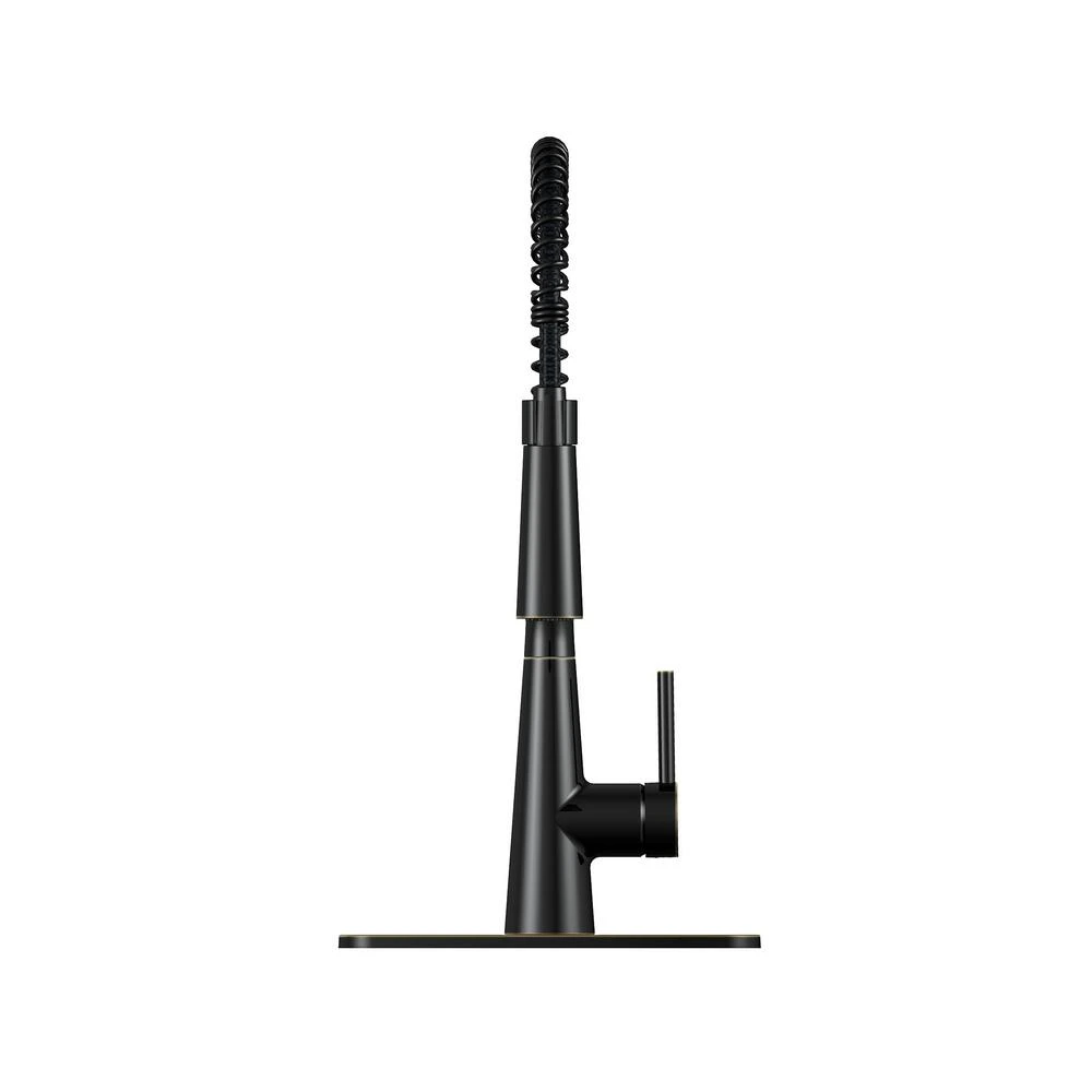 Enhance your kitchen with the professional style of this single-handle, pull-down kitchen faucet. Designed with a modern, oil-rubbed bronze finish, it features a spring-neck design for flexibility. The dual-function spray and stream offers additional versatility. Boasting a water-saving 1.8 GPM flow rate, this durable kitchen faucet includes quick connections and supply lines for easy installation on one- or three-hole sinks. It also comes with a drip-free cartridge and easy-clean removable coil.