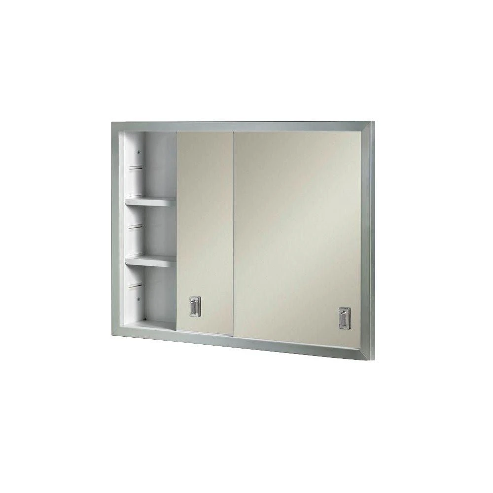 The sliding mirror doors of the Jensen B703850X Contempora 24-5/8 in. W Recessed Medicine Cabinet means you can access what you need and still never lose sight of yourself in the mirror. This oversized cabinet provides more storage room when space is an important consideration. A standard of the industry, the Contempora works with any bath or powder room design and still offers a lot of storage space. Two removable and adjustable steel shelves allow you to fit a variety of container heights, so all your important bath items are always within reach.