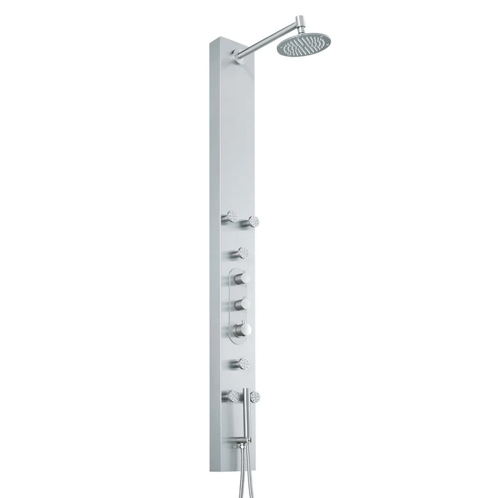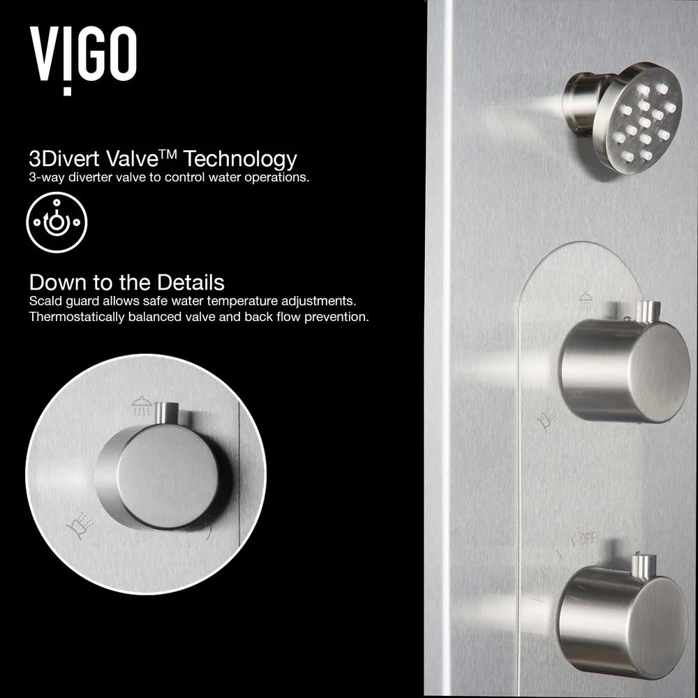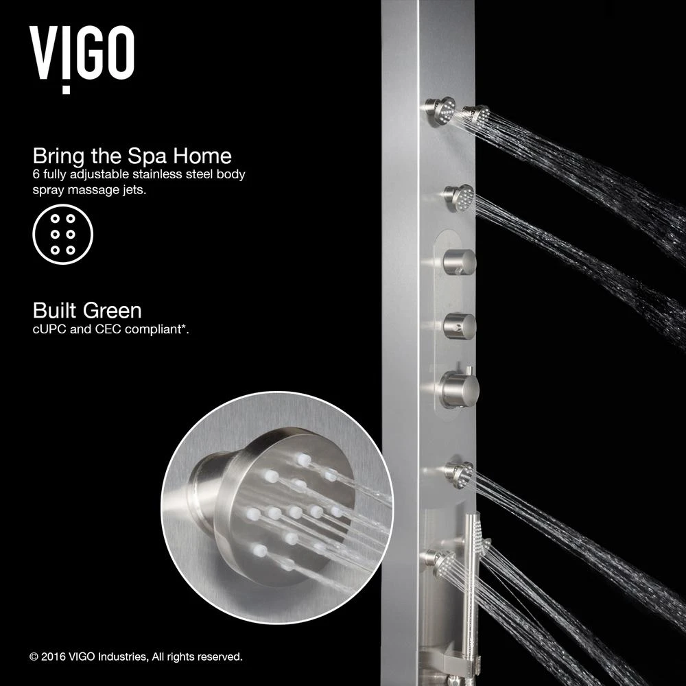 With six fully adjustable body spray massage jets and a hand shower, the VIGO Dilana Shower Massage Panel offers the ultimate shower experience. Constructed from sleek stainless steel, the Dilana Shower Panel has a round rain showerhead and a hand shower with a 58 in. stainless steel hose. Pre-plumbed for easy installation, this shower panel works with a flat wall installation or a corner setup. Enjoy true luxury and bring the spa home with the VIGO Dilana.