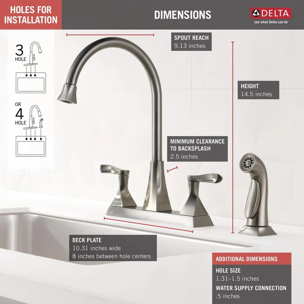 - Fits 3-hole or 4-hole installations