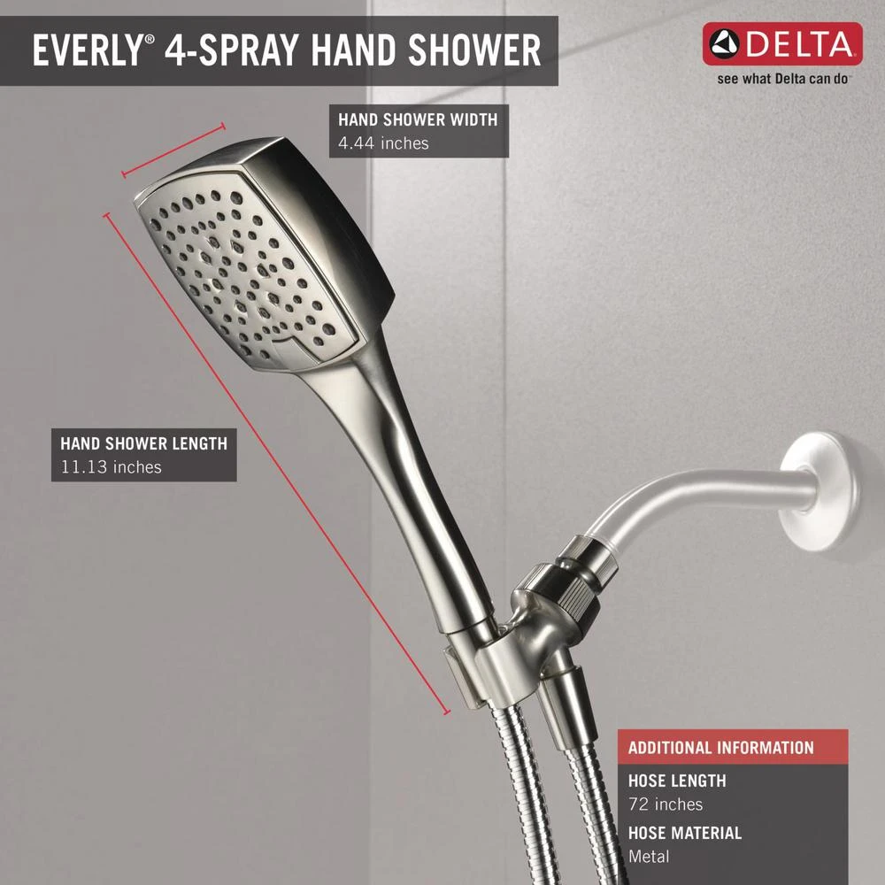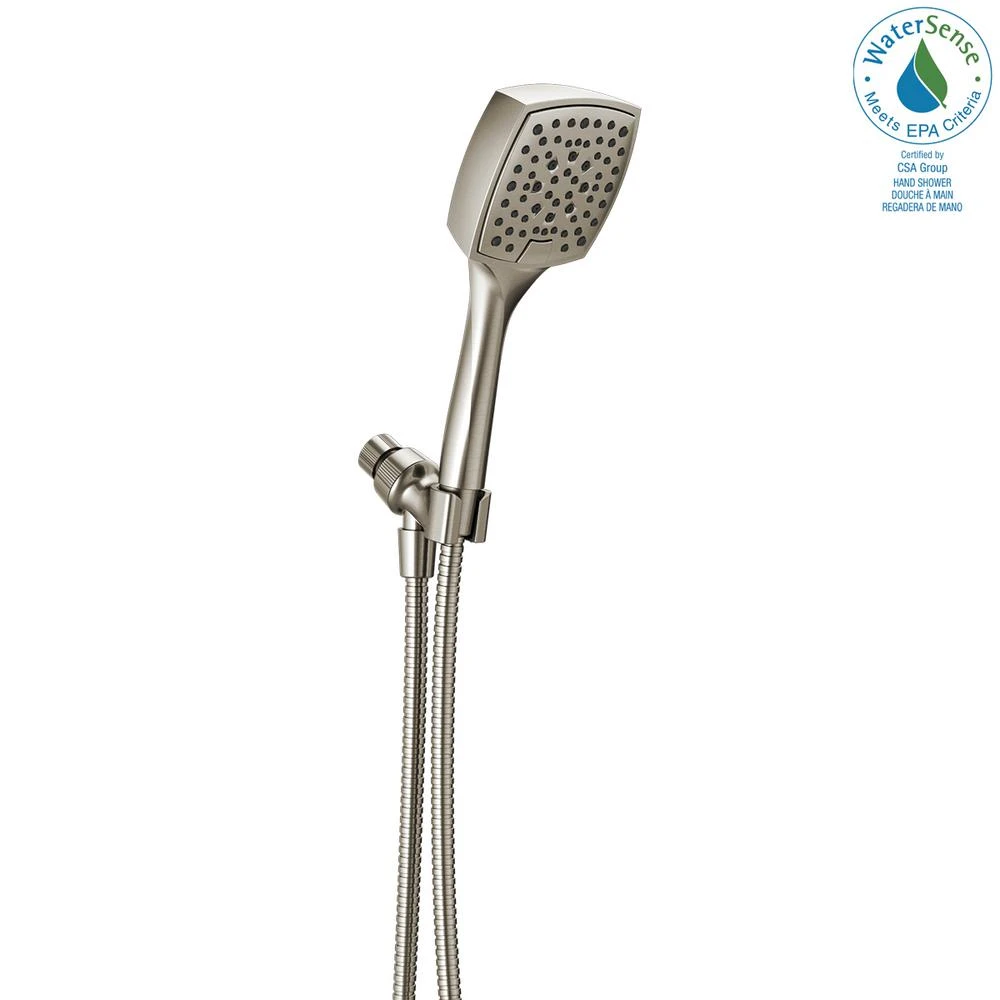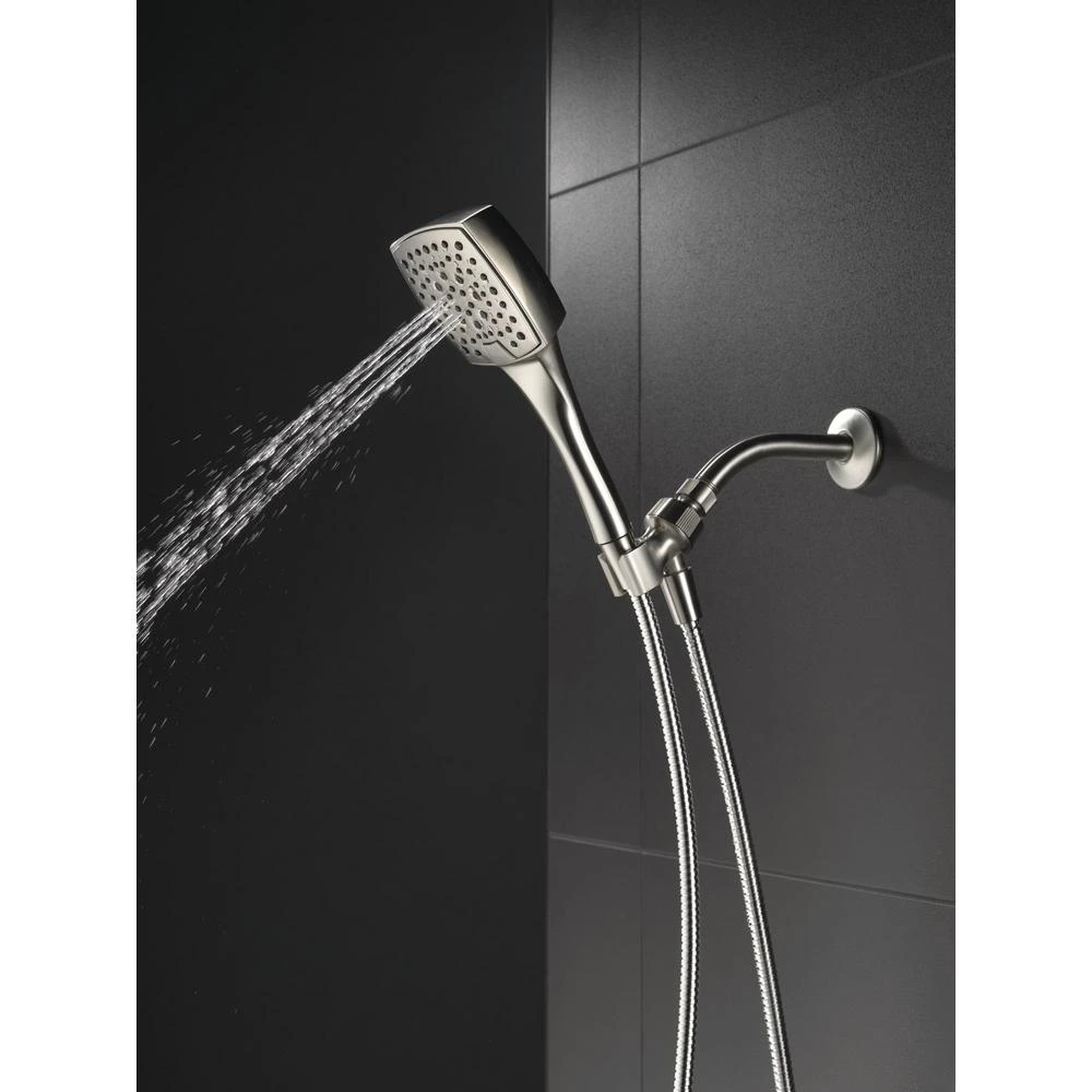 Experience a better shower with the control and flexibility of a Delta hand shower. Great for showering yourself or your loved ones and pets, as well as for keeping your shower and tub clean. Delta SpotShield Technology helps to keep your faucet or shower cleaner, longer by resisting water spots and fingerprints. Keep your space spotless with SpotShield Technology, available across a variety of finishes for the kitchen and bath. While other products may gather unsightly mineral build-up over time, Delta soft rubber Touch-Clean spray holes allow any mineral residue to simply be wiped away for an instantly refreshed look with no need for soaking or the aid of chemical cleaners. The pause setting gives you ample space for shaving, lathering and other shower tasks, then easily restarts the water with the temperature where you left off. This spray setting helps you conserve water, so you can worry less about depleting your supply of hot water – and you help the environment too. Delta WaterSense labeled faucets, showers and toilets use at least 20% less water than the industry standard saving you money without compromising performance.