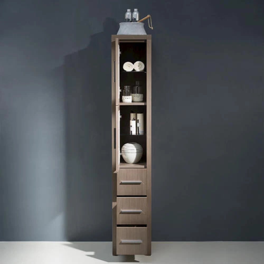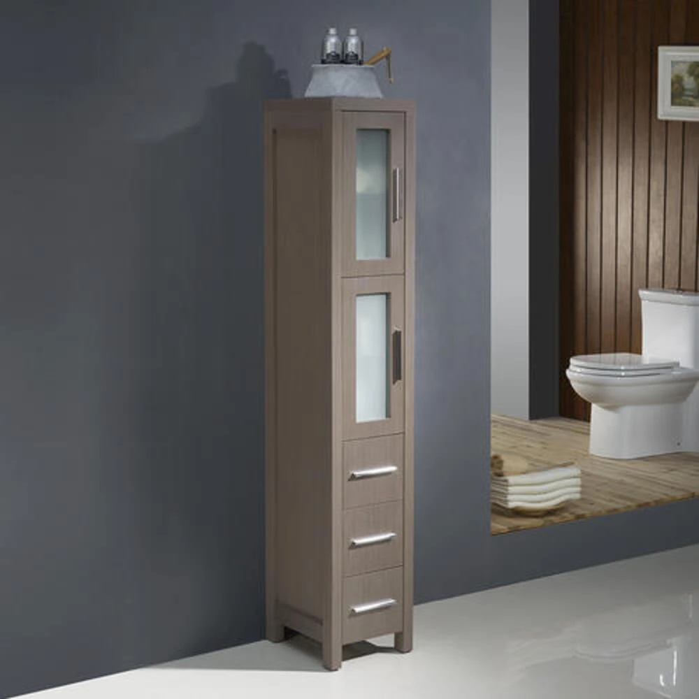 The Fresca Torino Tall Bathroom Linen Cabinet is not only a perfect addition to any Fresca Torino vanity ensemble, but it also works very well as a stand alone unit. The cabinet is made from a high quality veneer with frosted glass on the 2 doors.