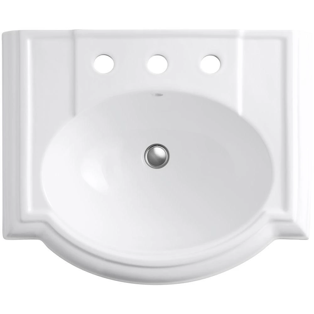 - Combination consists of KOHLER K-2287-8 lavatory drilled with 8 in. centers and K-2288 pedestal
