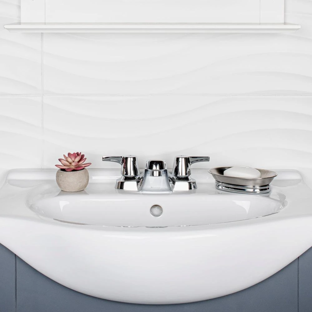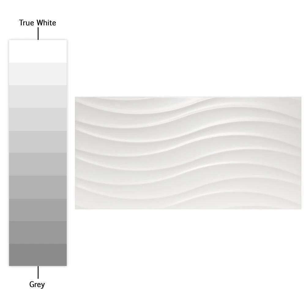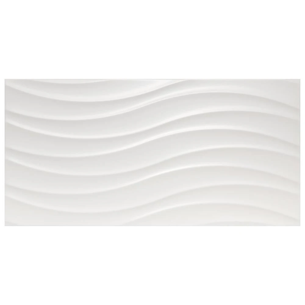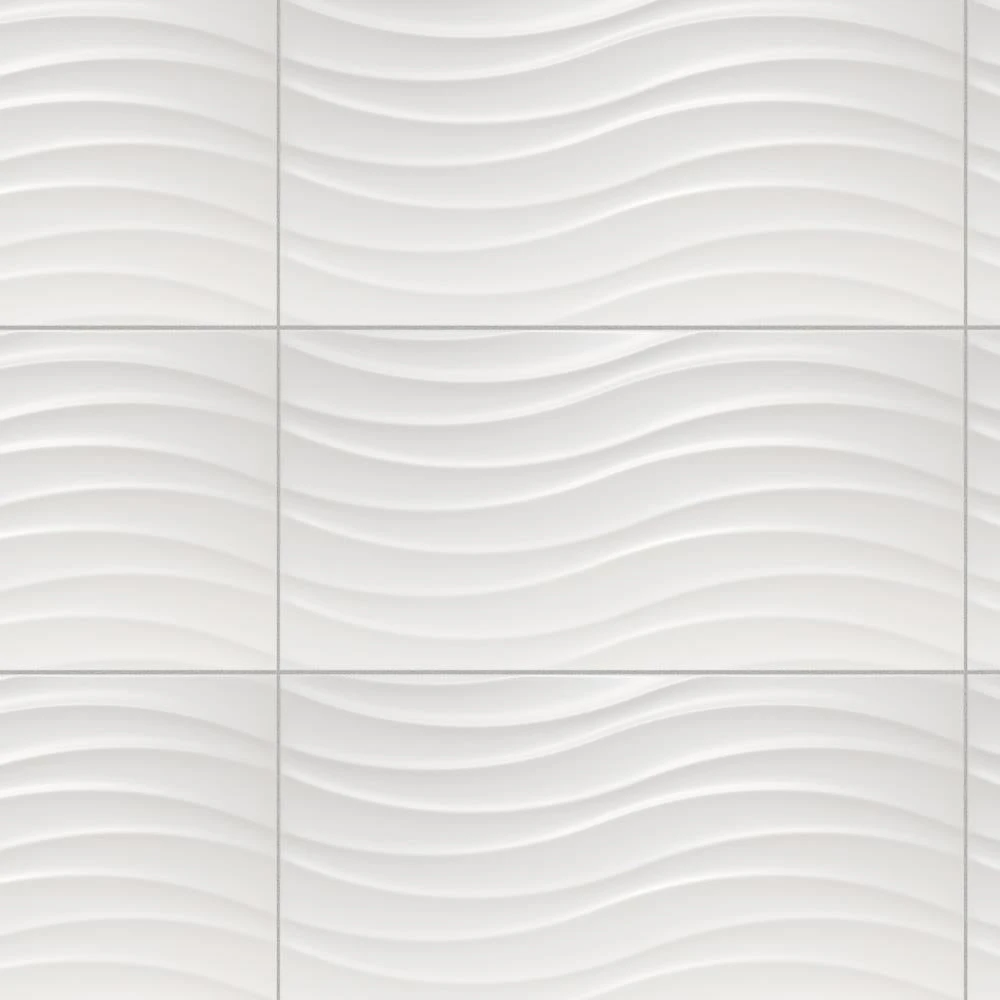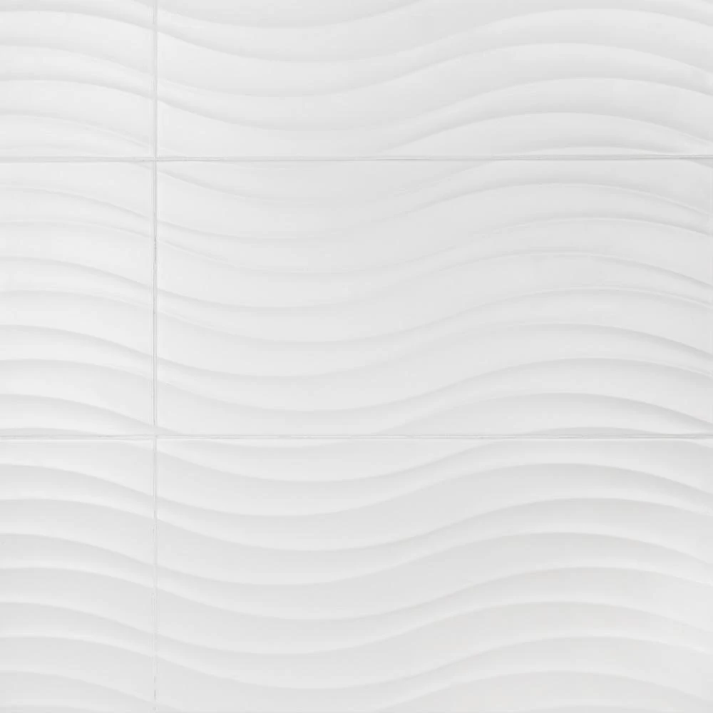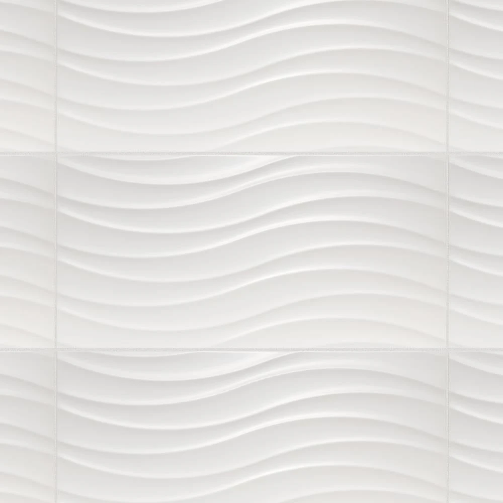 Captivating and soothing waves flow throughout the Merola Tile Silueta Blanco Matte 12-3/8 in. x 24-7/8 in. Ceramic Wall Tile. With a satin finish, this enlarged wall tile has a sweeping, dimensional surface that embodies versatility in design. A creamy pearlescent satin white glaze offers a simplistic color scheme that blends with any door. The wave pattern mimics a rushing current, offering luxurious design that blends seamlessly between tiles for continuity. Intended for interior walls, this tile is great for showers, bathrooms and backsplashes. You can pair this tile with many other products, including ones in the Silueta series, to create your own lavish escape.