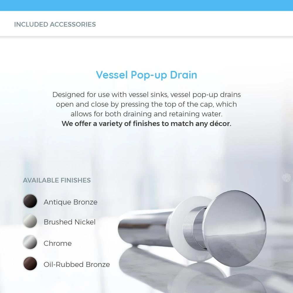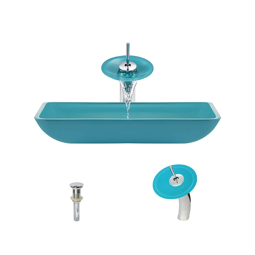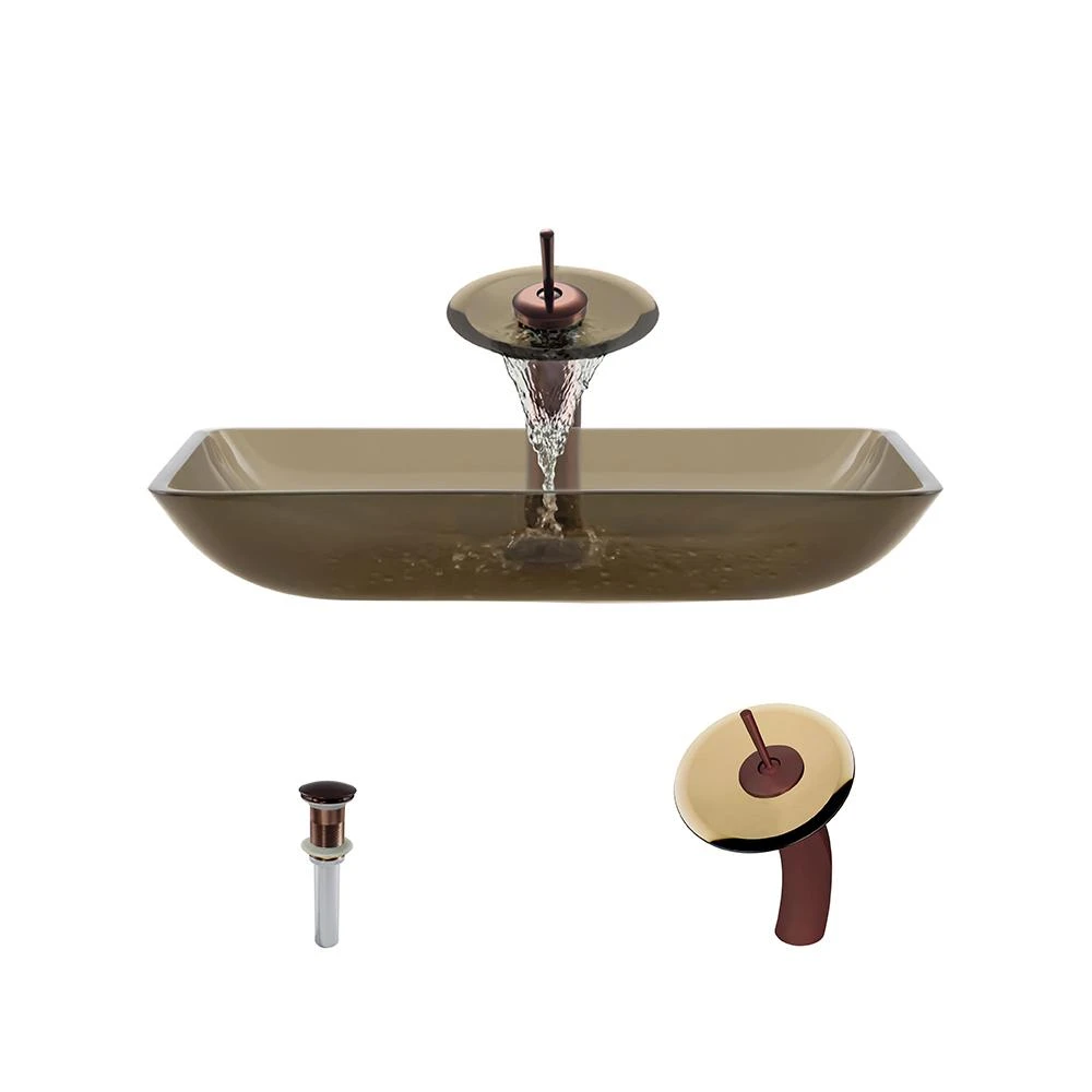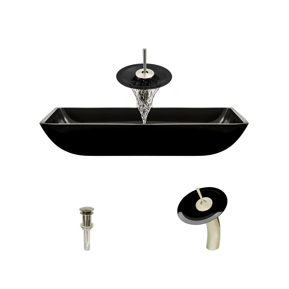 - Ensemble includes: vessel sink, waterfall faucet, and pop-up drain