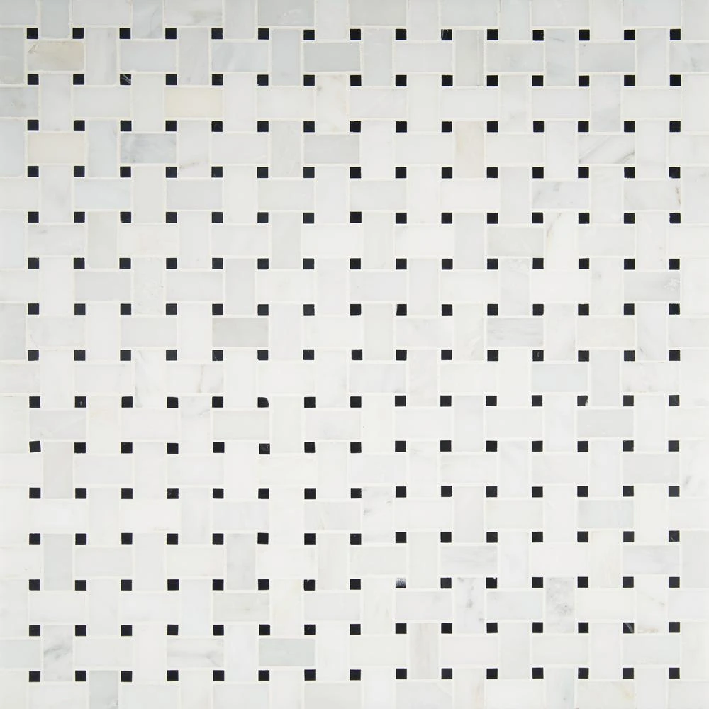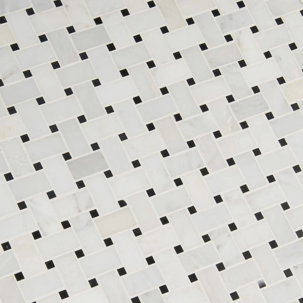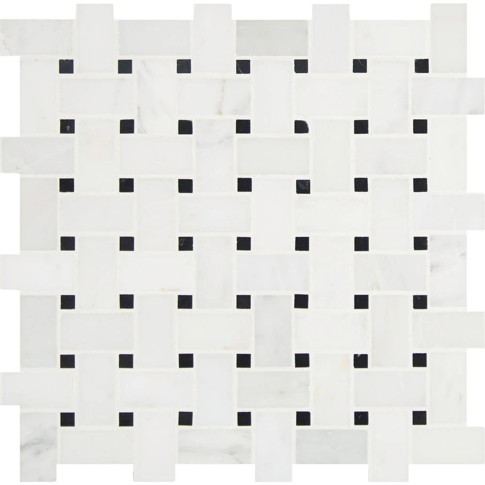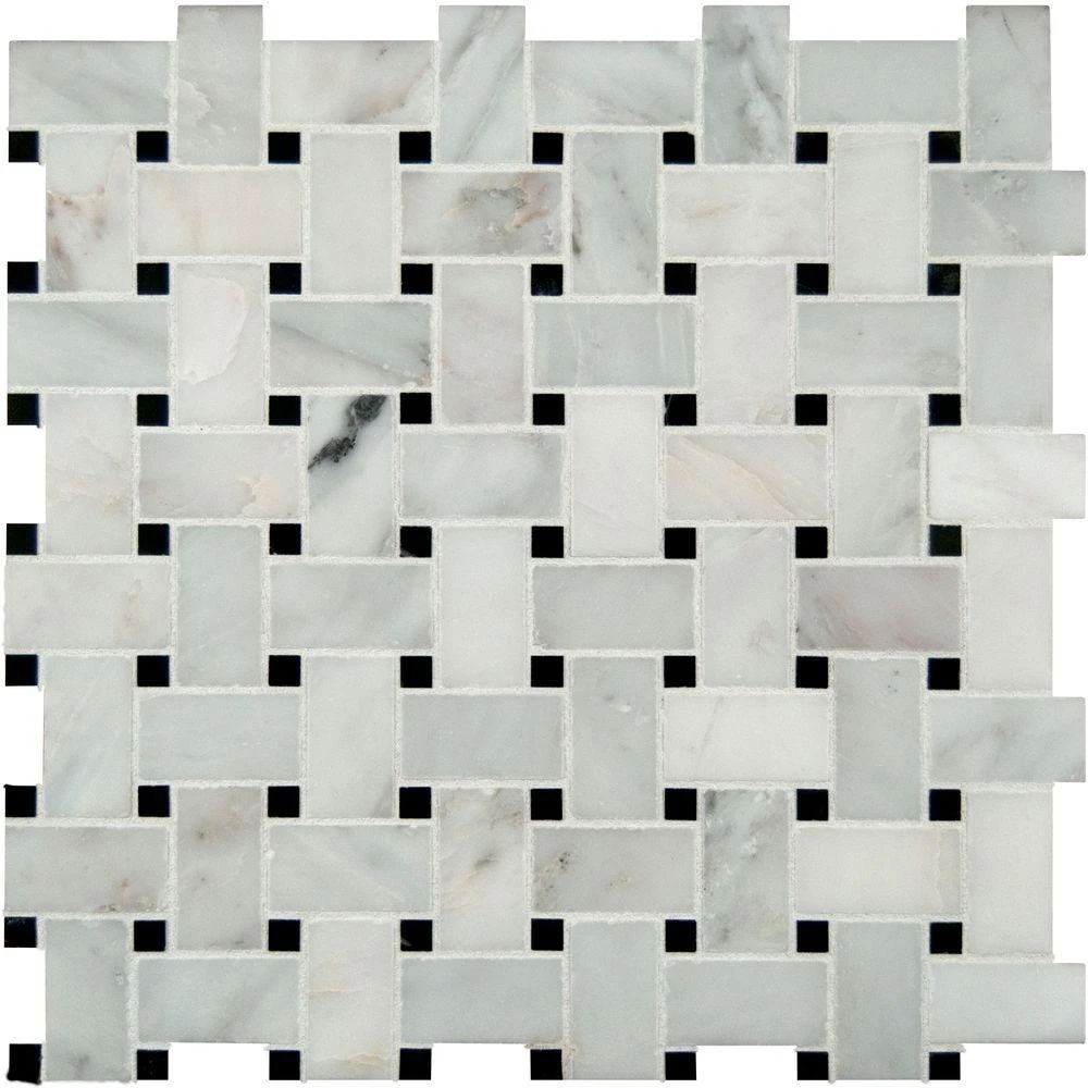 These Greecian White Basket-weave Mosaic Tiles serve as a stunning choice for a kitchen backsplash, fireplace surround, bath wall tile or feature wall. They measure 12 in. x 12 in. and are natural white polished marble in a basket-weave pattern. They are easy to install and feature low-sheen, honed-finished tiles that blend beautifully with any style and are versatile enough to be used outside. When using natural stone products, it is recommended to blend tiles from different boxes when installing. After installation, vendor disclaims any liabilities. Natural stones may be characterized by dry seams and pits that are often filled. The filling can work its way out and it may be necessary to refill these voids as part of a normal maintenance procedure. Natural stone products inherently lack uniformity and are subject to variation in color, shade, finish, etc.