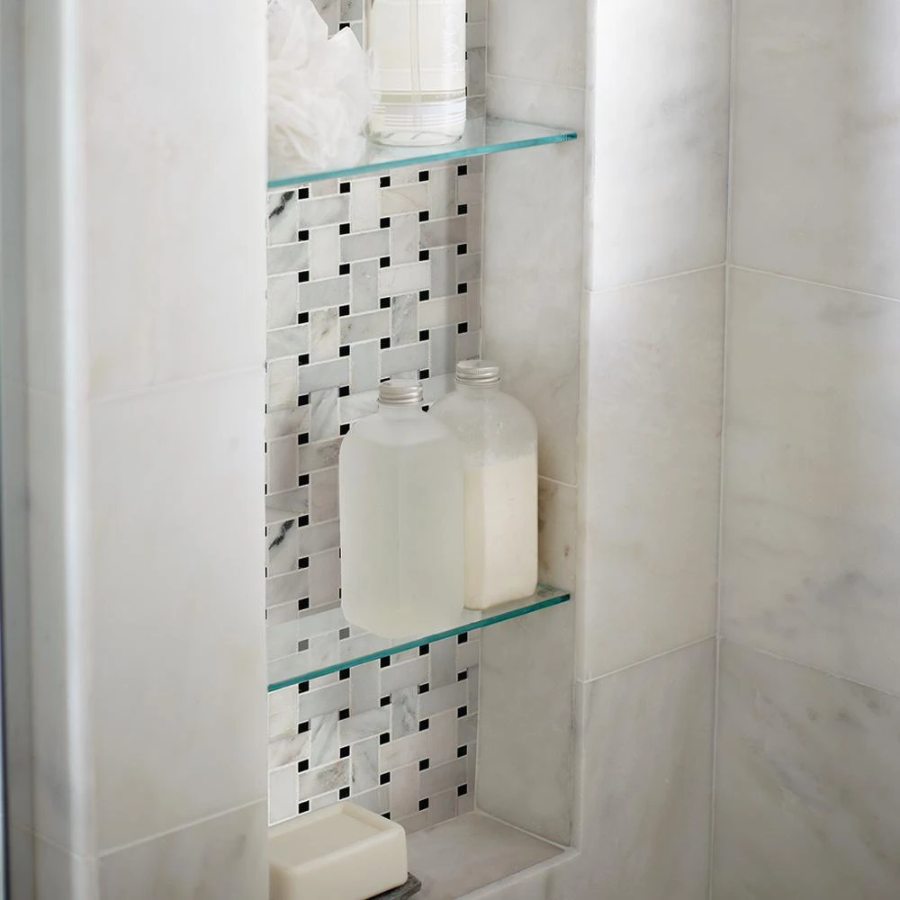 - Don’t forget your coordinating trim pieces, grout, backerboard, thinset and installation tools