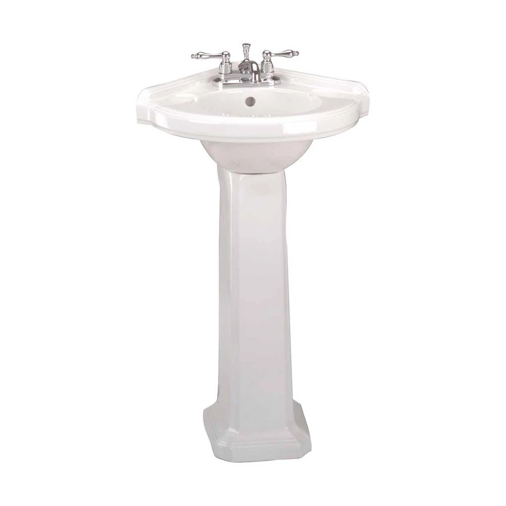- Corner space-saving pedestal sink of 32-3/4 in. H x 22 in. W x 20 in. project.