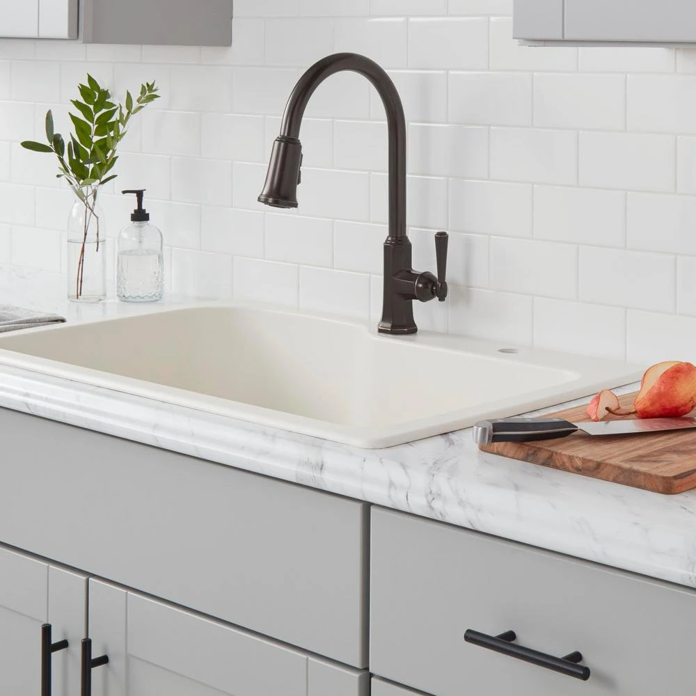 The Glacier Bay Sentio collection features an inspired design of traditional elegance. For easy installation and limited lifetime warranty, view Sentio as a family that offers durable yet stylish design. This Pull-Down Kitchen Faucet is a perfect addition to any new home or renovation.