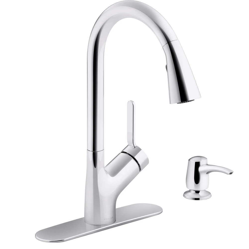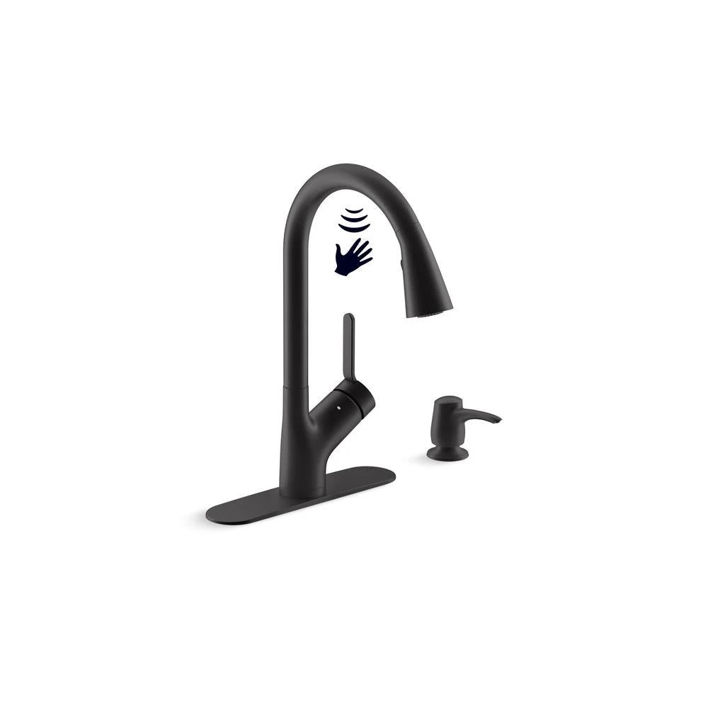 With a modern profile and smooth edges, the Setra touchless kitchen faucet has a sleek aesthetic that blends seamlessly into nearly any kitchen decor. Touchless technology helps reduce messes and makes kitchen tasks easier. Simply wave your handor an object such as a pan or utensil to turn the faucet on or off. The pull-down sprayhead featuring Sweep spray delivers a wide, forceful spray, simplifying kitchen cleanup.