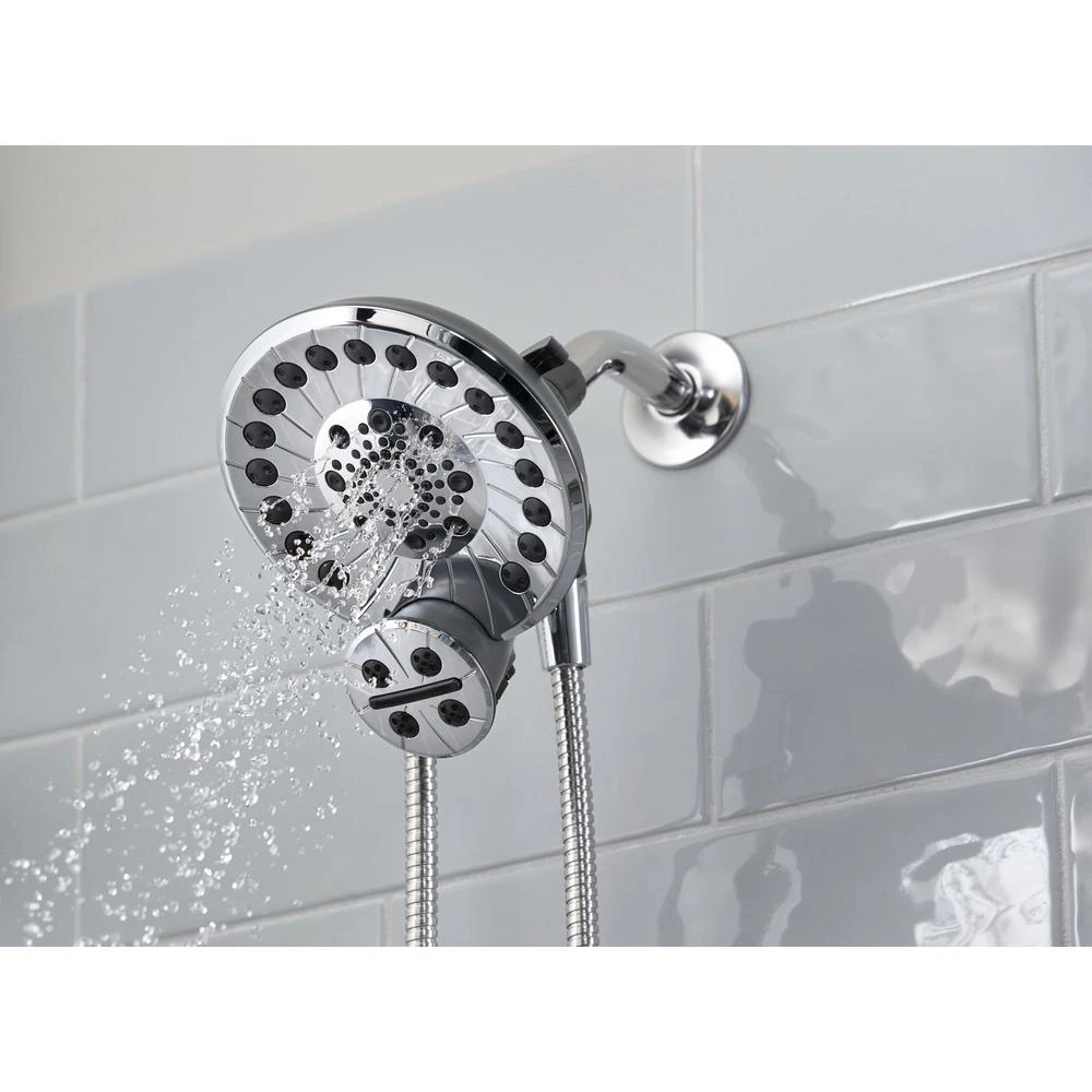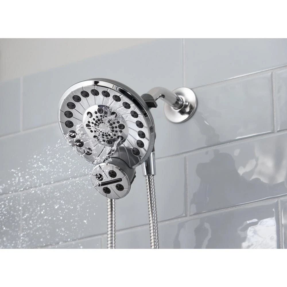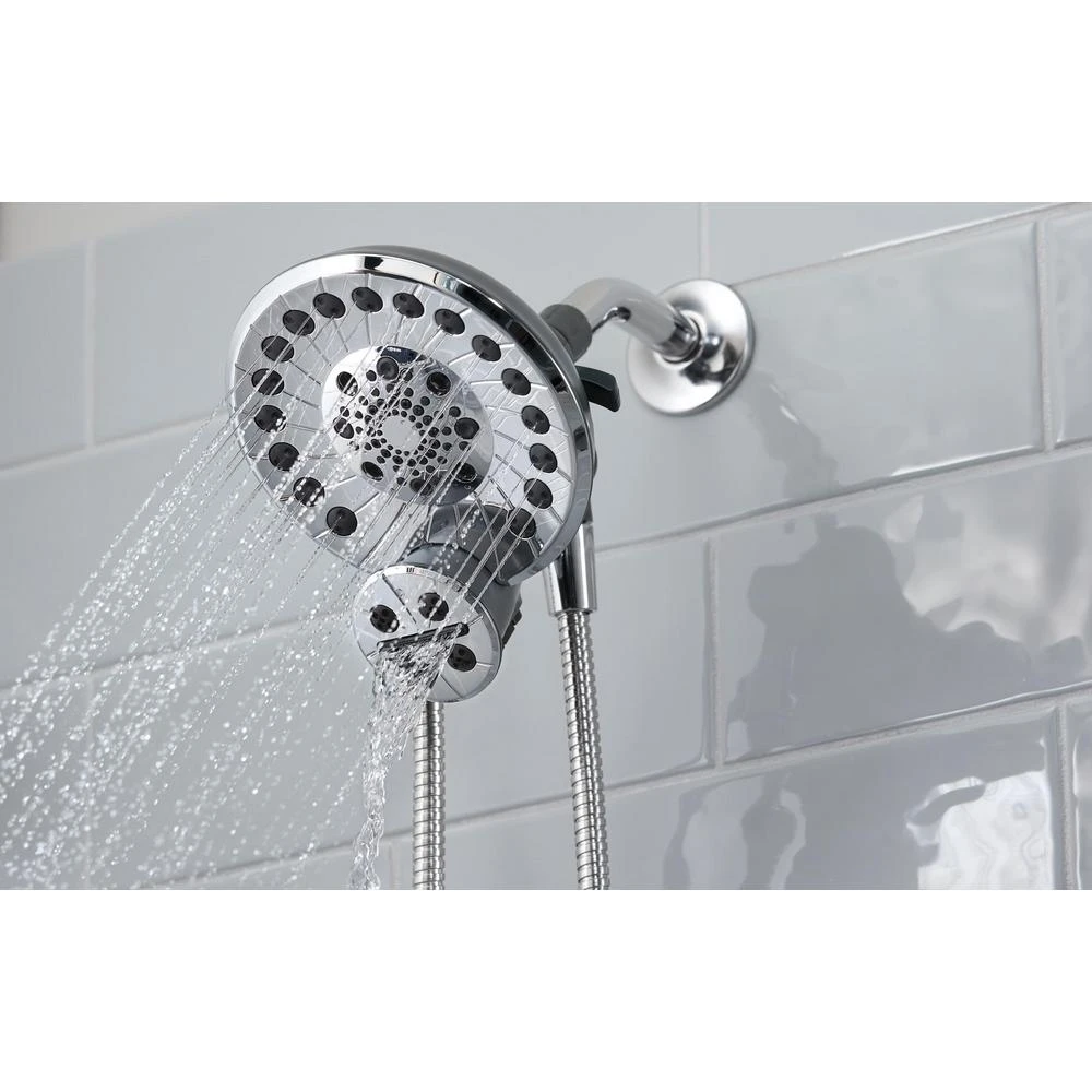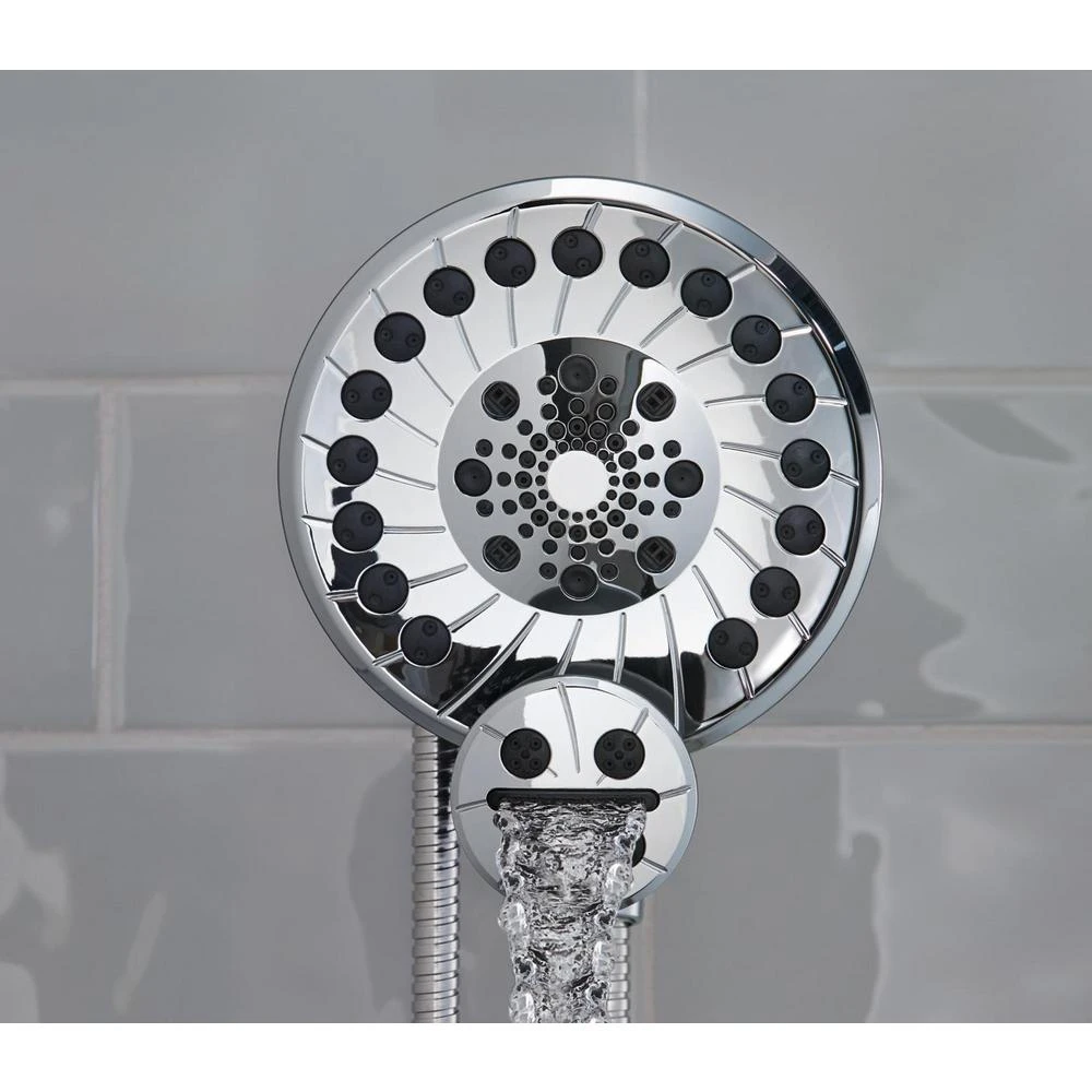 - Shower head features five spray patterns: water-amplifying spray, full spray, massage spray, full spray with wand spray, and wand spray
