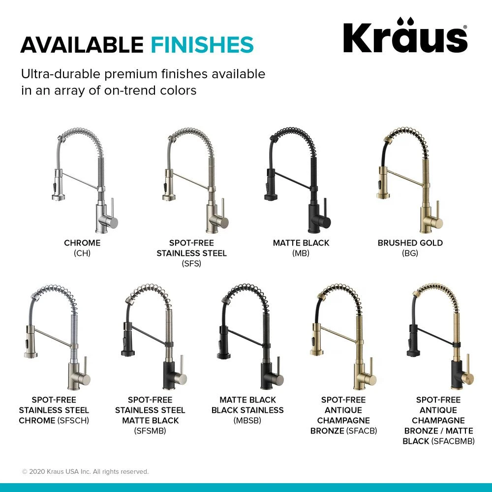 - SPOT FREE Antique Champagne Bronze/Matte Black finish prevents water spots and fingerprints for a cleaner faucet, creates a high-end modern look – All Kraus finishes are corrosion-resistant and will not fade over time