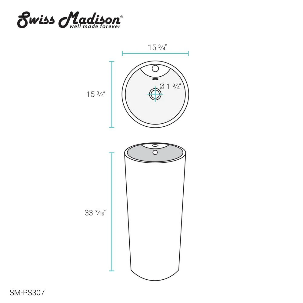 The solid freestanding 1-piece design of Swiss Madison’s Monaco pedestal sink is a modern look that brings a unique flair to any bathroom setting. The sink is constructed of durable ceramic for a long-lasting fitting. It’s seamless finish provides a smooth surface for superior shine and easy cleaning.