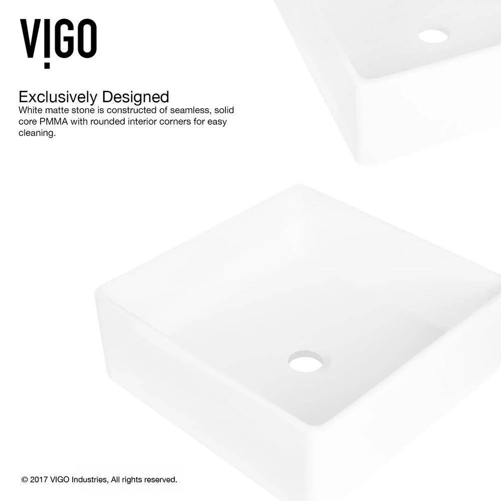- Matte Stone: proprietary to the VIGO brand, Matte Stone is a seamless, solid-core composite that resists scratches, impact and discoloration