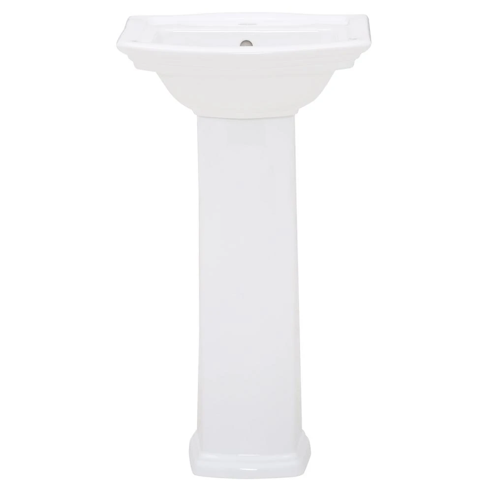 - Pedestal sink basin with leg delivers a seamless design